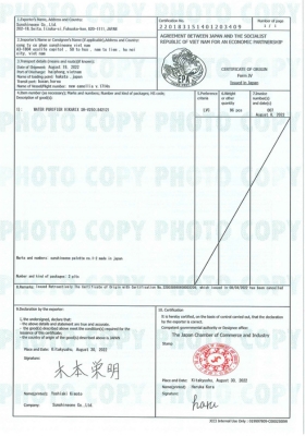 Thiết bị đã đạt tiêu chuẩn cho “Luật cấp nước” do Bộ y tế ,lao động và phúc lợi quy định và “máy lọc…